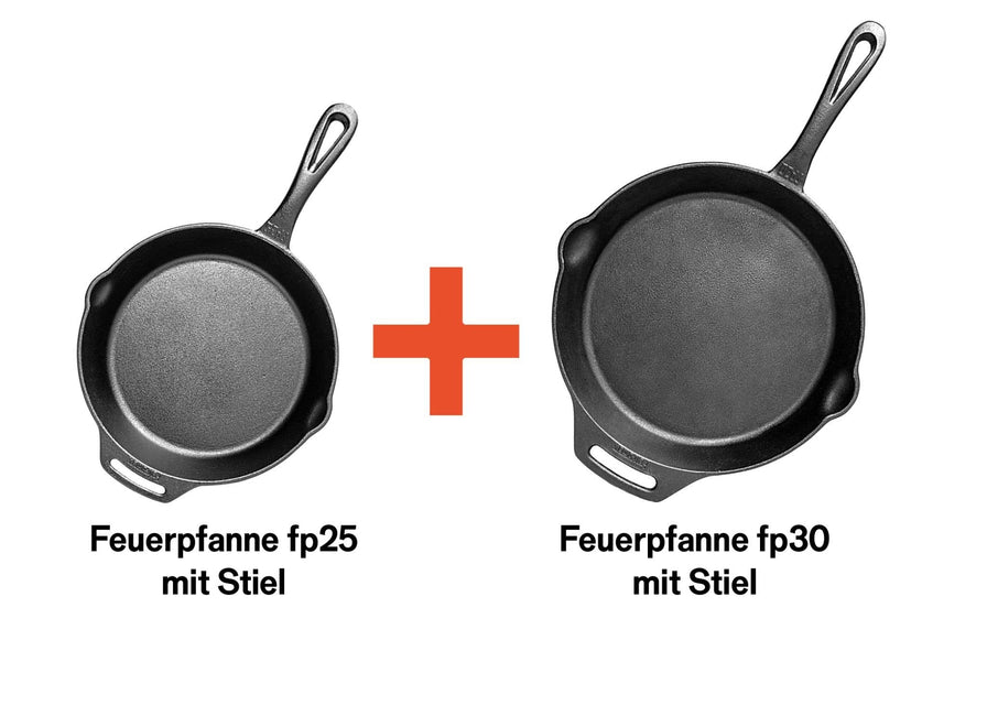 Le set de deux poêles en fonte (25 & 30 cm) offre une répartition parfaite de la chaleur, un effet antiadhésif naturel et fonctionne sur la cuisinière, le four, le gril & le feu de camp.