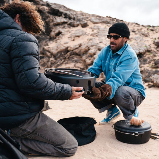 L'Atago Grill - qu'il soit en acier inoxydable ou en Black Edition - devient absolument polyvalent lorsqu'il est combiné avec le Petromax Dutch Oven de taille ft6 ou ft9. Les marmites en fonte disponibles en option s'adaptent parfaitement à l'Atago, pour des résultats de cuisson optimaux.