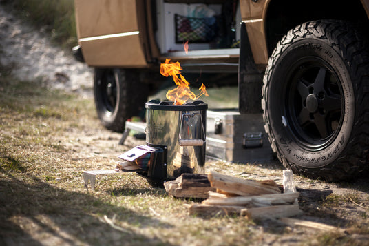 Le poêle-fusée autarcique Petromax chauffe correctement ton ustensile de cuisine en un rien de temps pour préparer un repas consistant. Ce réchaud compact est parfaitement conçu pour cela, car il brûle les branches, les brindilles ou les pommes de pin de manière particulièrement efficace. Grâce à la bonne isolation vers le bas, tu peux aussi poser ton poêle-fusée sur une table de camping et te lancer dans ton aventure culinaire, car la chaleur est concentrée dans un petit espace au centre du poêle.