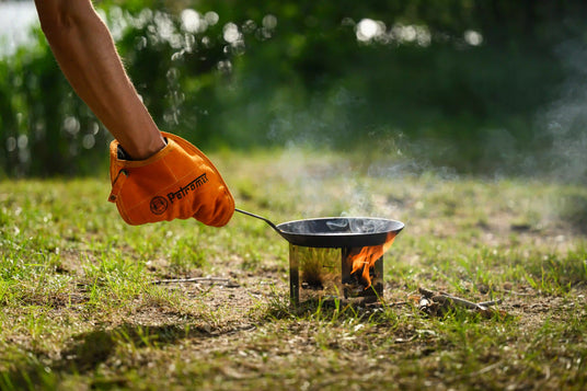 Les maniques en aramide t'offrent une protection pratique contre la chaleur de contact jusqu'à 250 °C. Les gants de cuisine doublés de fibres d'aramide sont faciles à enfiler grâce à leur grande ouverture et te protègent efficacement des brûlures lors de tes aventures culinaires. La surface en cuir rugueux naturel confère aux maniques une résistance supplémentaire et une prise en main idéale. Tu peux ainsi déplacer tes casseroles et poêles avec précision sur ton foyer ou ton barbecue. Il est également possible de poser tes ustensiles de cuisine sur les maniques. Dans l'orange brûlant de Petromax avec le logo traditionnel, elles complètent ton équipement de cuisine en plein air avec un équipement visuellement fort. Bien sûr, tu peux aussi utiliser les maniques en aramide sur la plaque de cuisson à la maison.