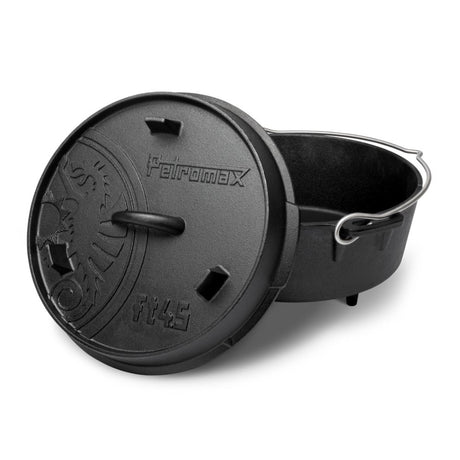 For traditionalists and outdoor cooks who want to use the full range of features, the Original Petromax Dutch Oven remains the first choice. It has everything that has made Petromax great: the sturdy feet on the lid allow it to be used upside down as a separate pan directly in the embers, while the thermometer feed-through ensures that you can precisely control the core temperature of your roast. Whether a purist everyday companion or a fully equipped classic - every dish becomes a culinary highlight in these black pots.