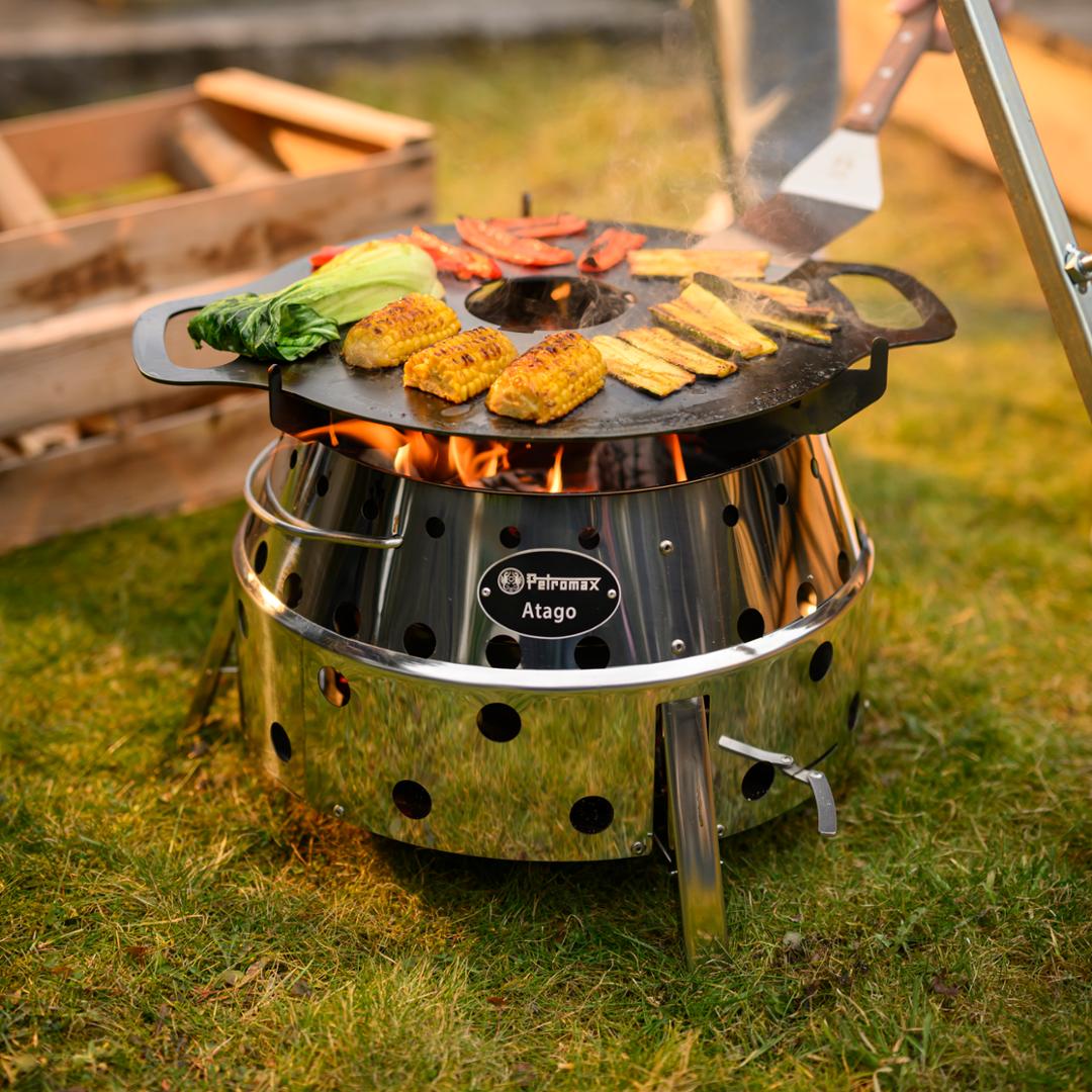 - The Petromax insert for Atago grill plate is a mini grill grate, through which the intense roasting aromas through the crackling fire get into all meat dishes. Peppers or beef fillet with grill stripes are just as possible as a safe storage place for your cookware. The insert fits perfectly not only into the cooking attachment, but also into the recess of the Atago grill plate. The meat sizzles around the insert and the potato wedges are already ready and eagerly awaited.