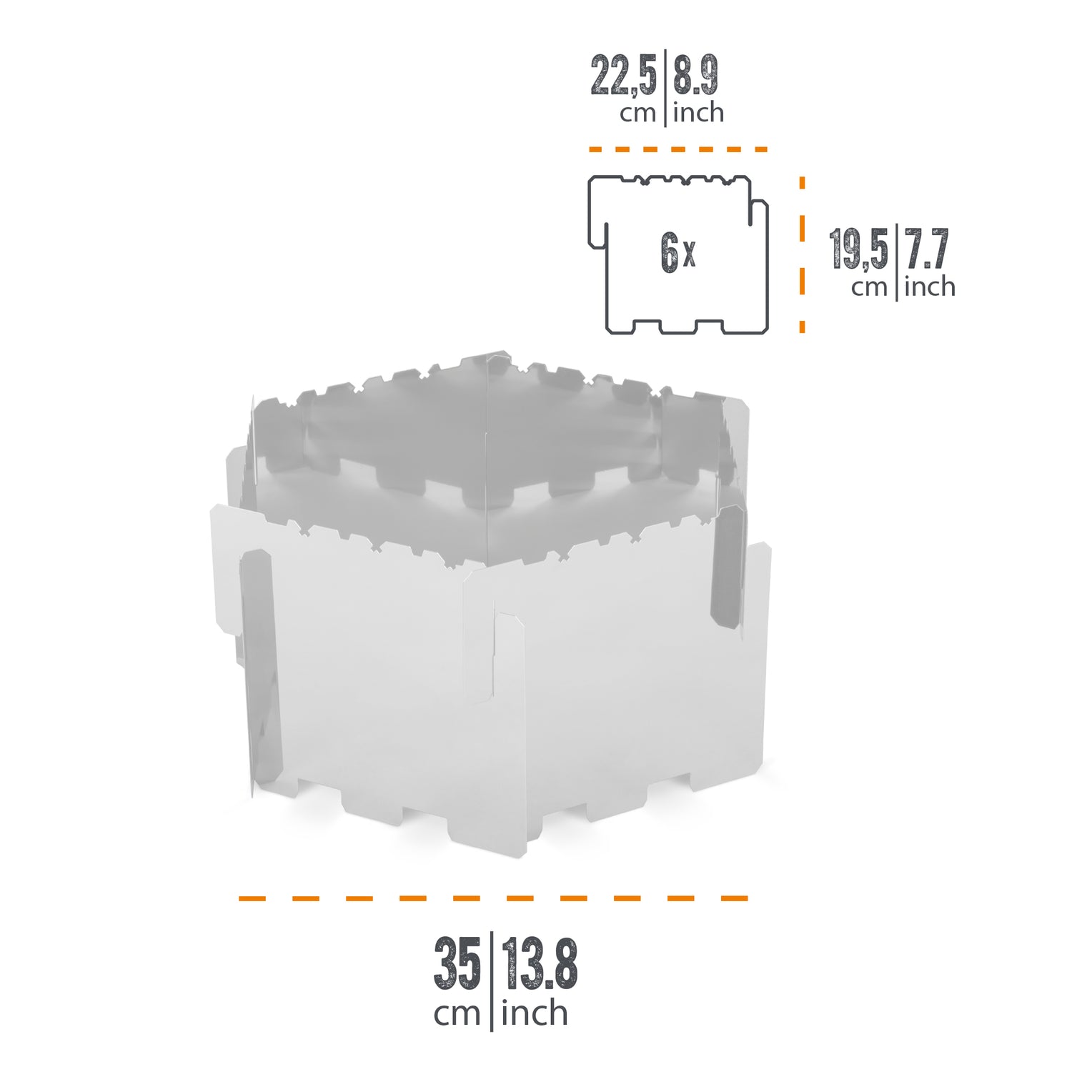 If you use all six segments, the reflector shield allows you to fix the Atago grill grate comfortably and securely. This way you can prepare your barbecue at an optimal height and protected from the wind. This way, there is enough distance to the fire to perfectly cook juicy steaks, tender fish and delicious grilled vegetables.