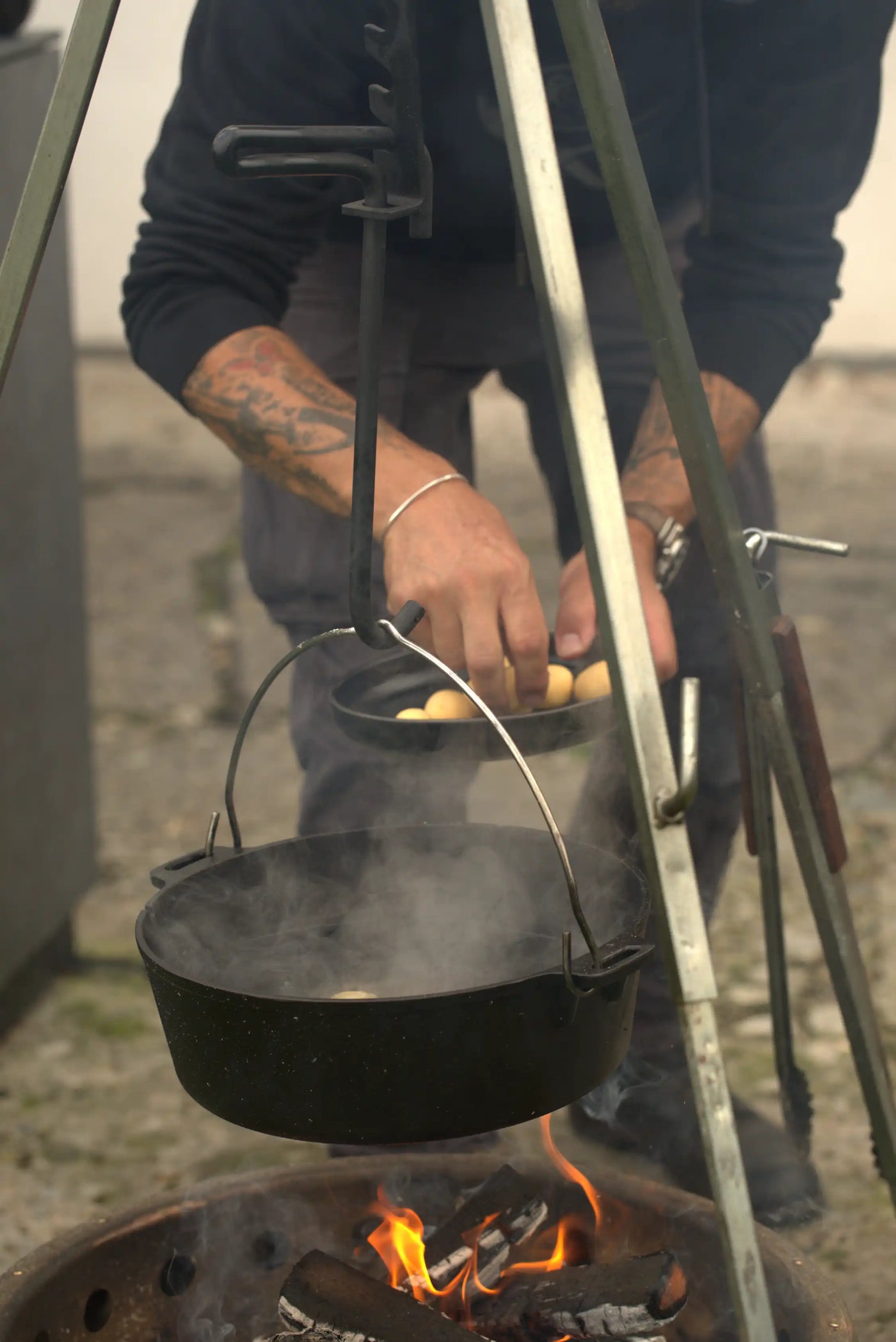 - Dutch Oven on a tripod: For cooking speculoos dumplings directly over the fire bowl.