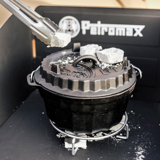 Avec le set de cuisine Petromax Outdoor, tu reçois tout ce dont tu as besoin pour cuisiner vraiment à l'extérieur - y compris deux marmites de différentes tailles : la grande ft9 pour 8-14 personnes et la ft4.5 plus maniable pour les petites portions. Avec la table de cuisson, les briquettes Cabix Plus et les gants de cuisine Aramid, tu es parfaitement équipé pour préparer des menus complets à l'extérieur.
